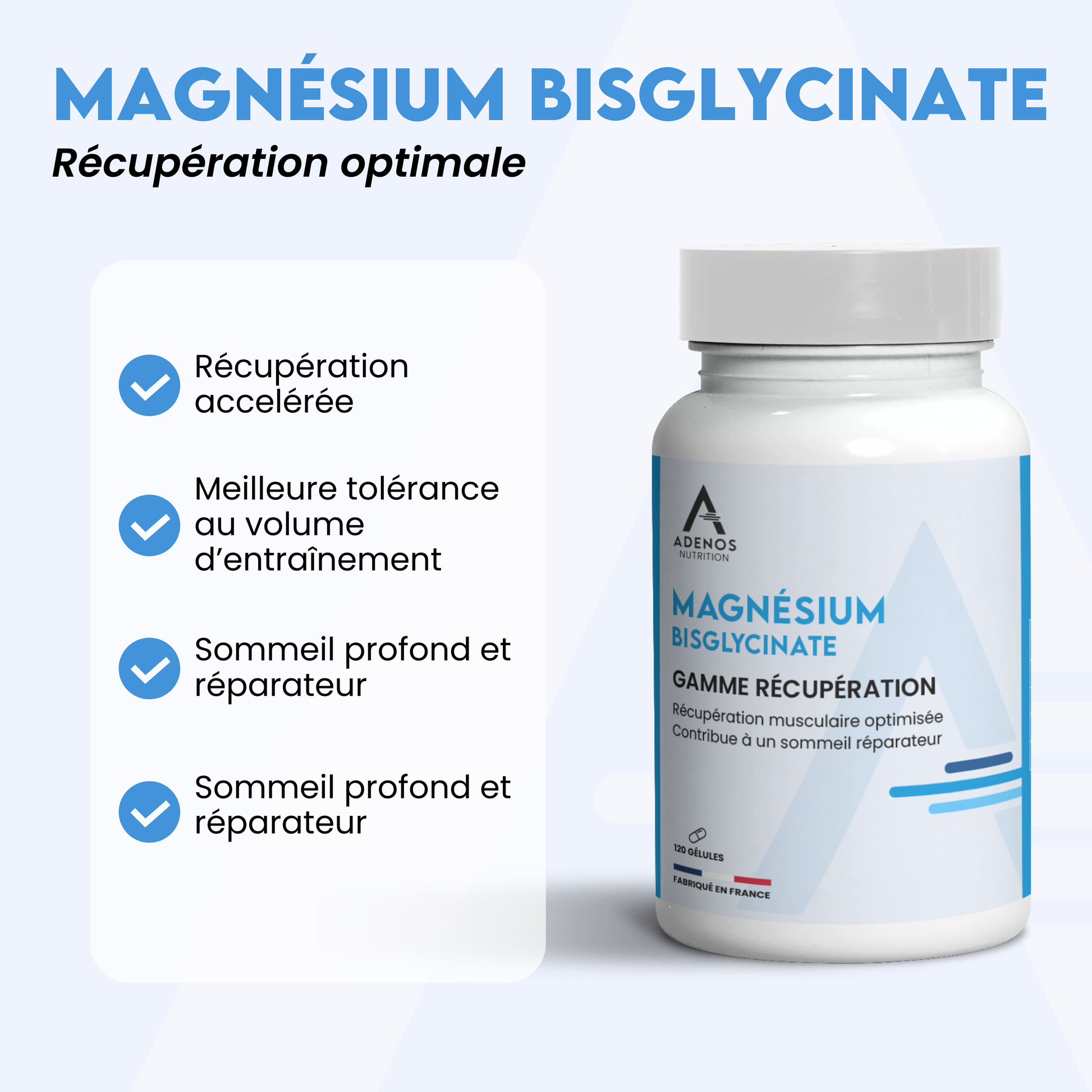 - Magnésium bisglycinate : favorise une récupération optimale, réduit les crampes, améliore la qualité du sommeil et soutient l’équilibre nerveux après l’effort.