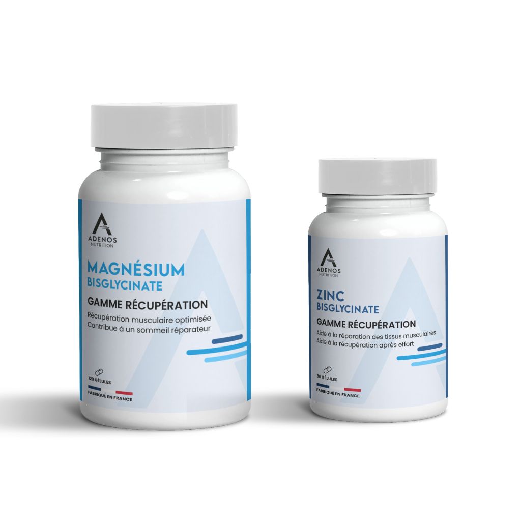 Le Pack Récupération Optimale d’Adenos Nutrition associe deux compléments indispensables pour soutenir votre récupération : le magnésium bisglycinate et le zinc bisglycinate, tous deux hautement assimilables et sélectionnés pour leur efficacité sur le sommeil, la fatigue et la récupération musculaire.